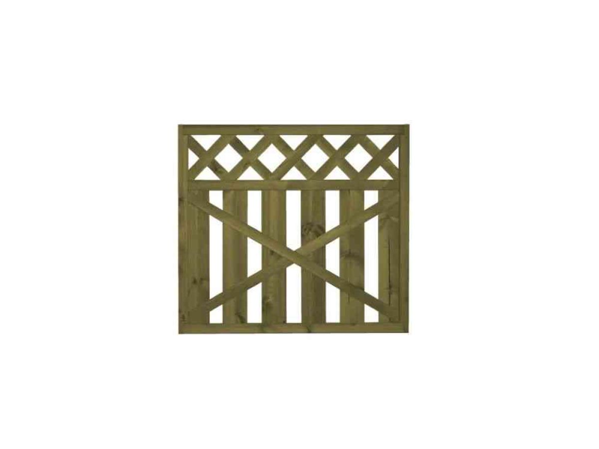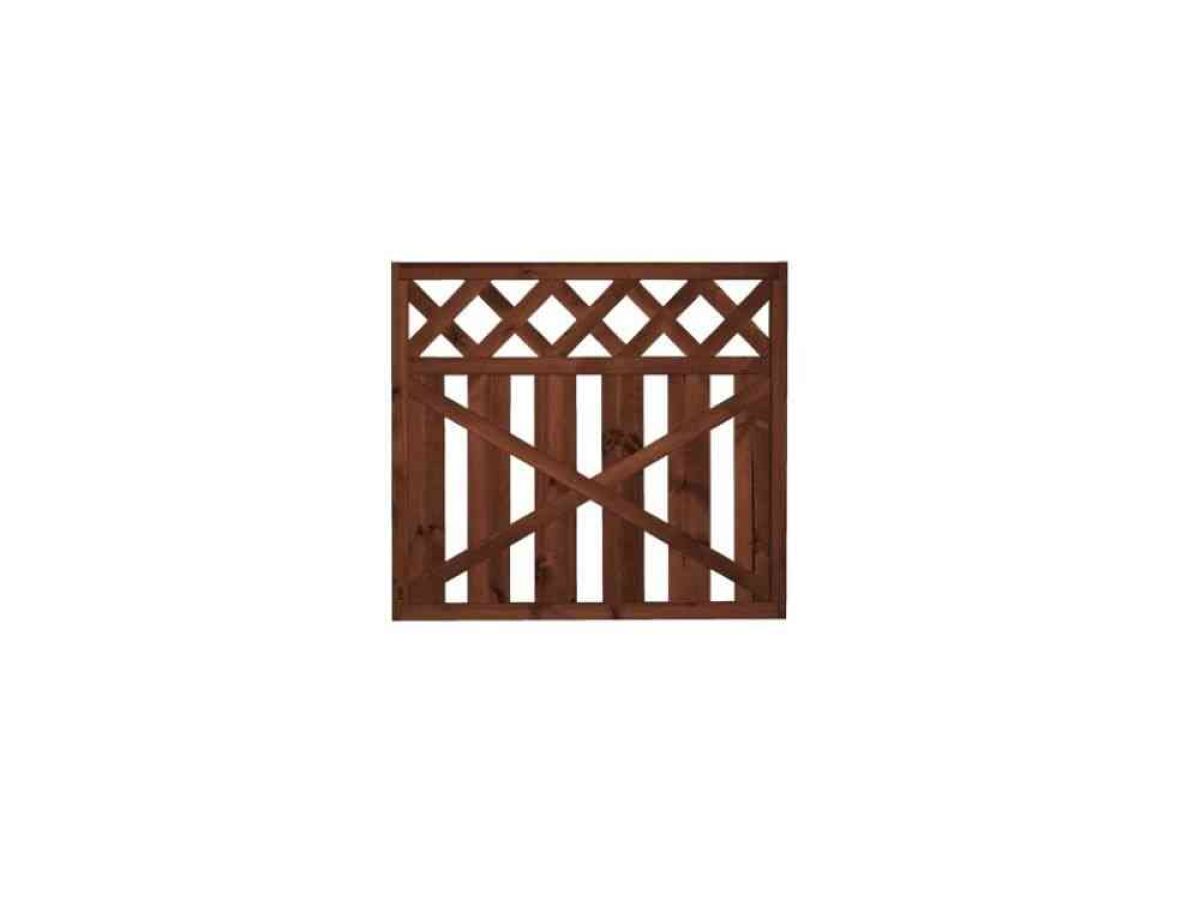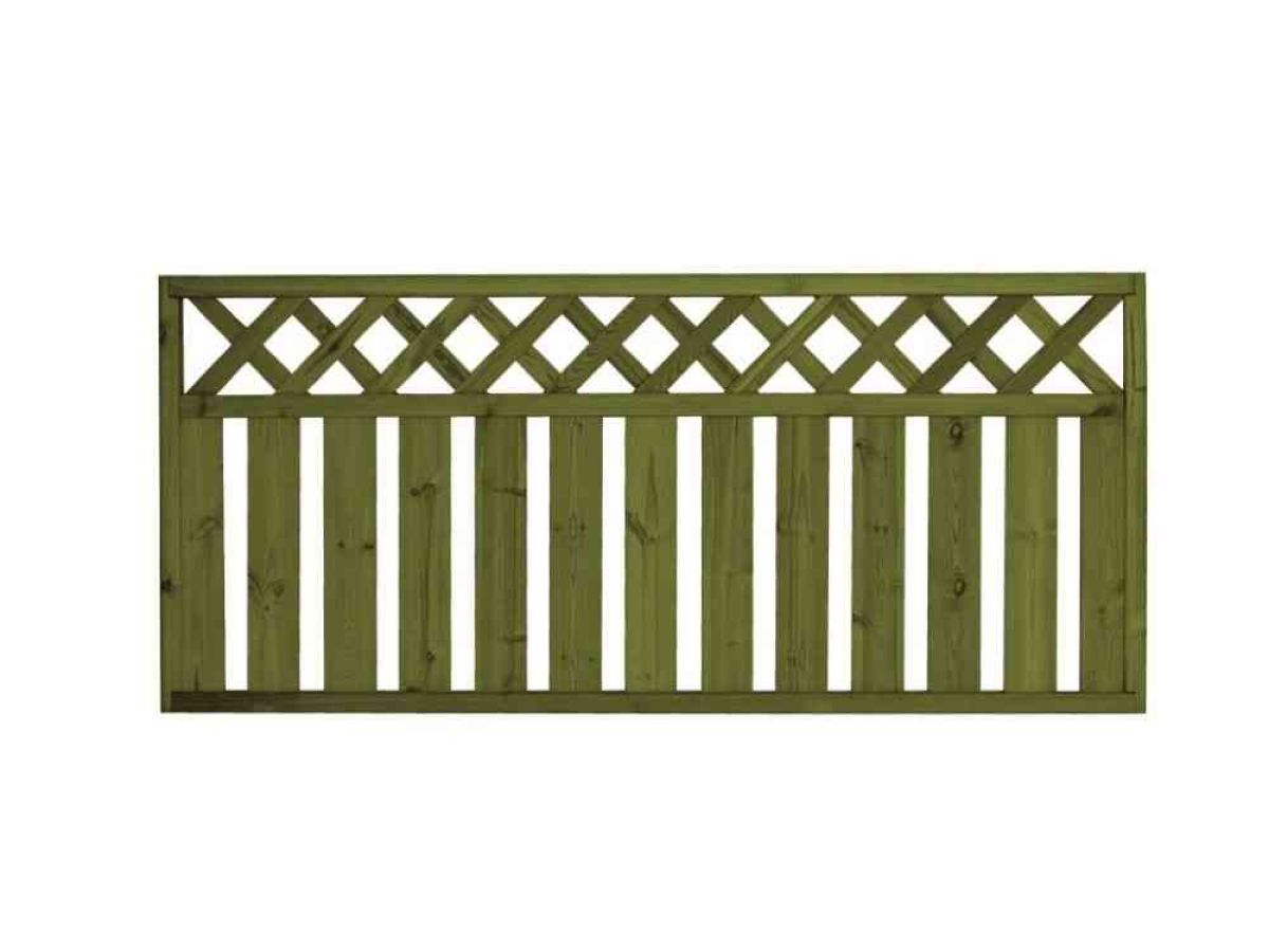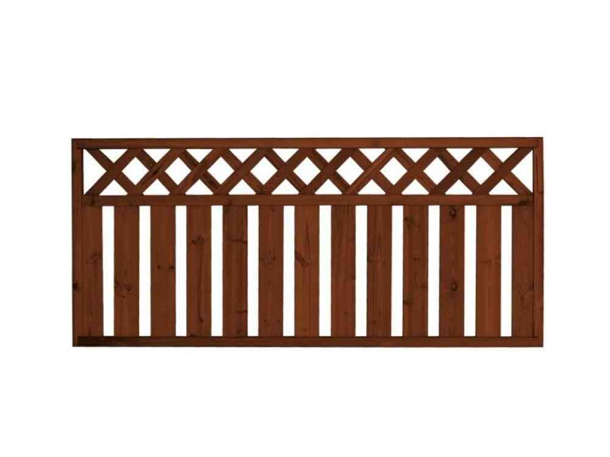 Lehtoharju-aita on pystylaudoitettu aitaelementti, jossa on ristikkomallinen yläosa.