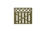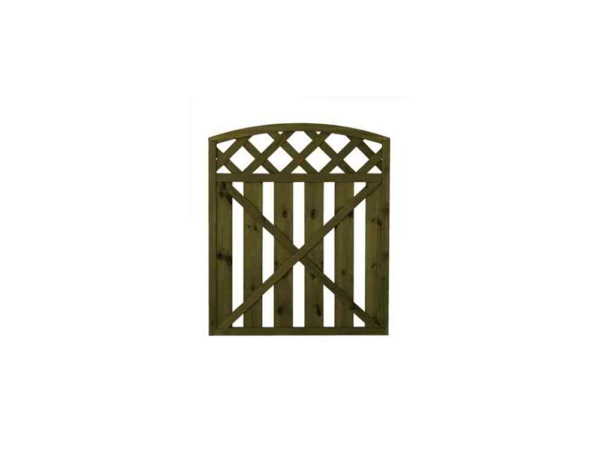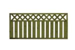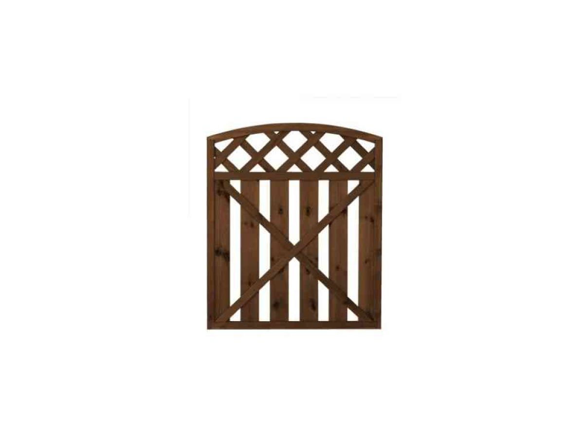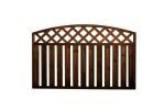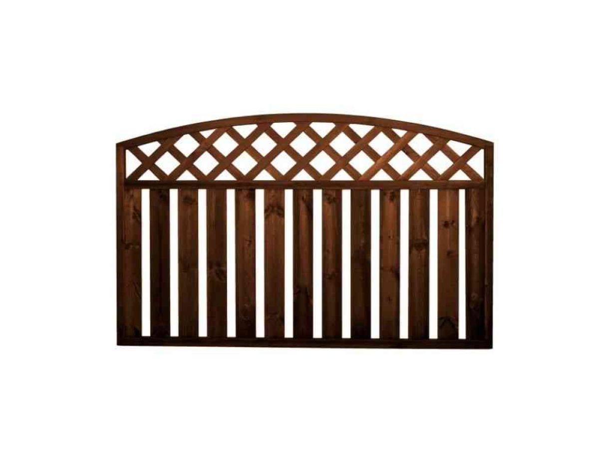 Lehtoharju-aita on pystylaudoitettu aitaelementti, jossa on ristikkomallinen yläosa.