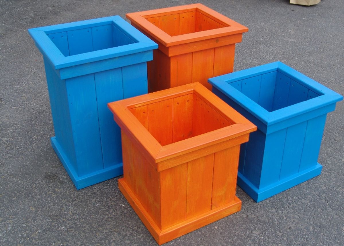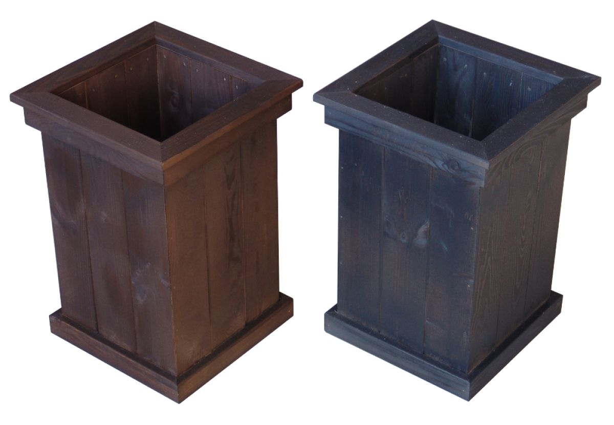 kukkalaatikot kyllästettynä tai petsattuna eri väreihin.