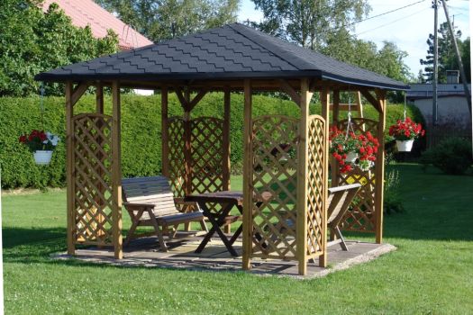 Toinen olohuone pihallasi! Paviljongilla vietät terassikautta vaikka ympäri vuoden. Sen voi sijoittaa valmiille terassille tai terassilattian kanssa melkein minne vain. Paviljonkeihin mahtuu hyvin puutarhakalusteita, kuten tuoleja, pöytiä ja sohvia, mikä tekee niistä täydellisiä paikkoja ruokailuun, seurusteluun tai rentoutumiseen. Vahvat ja huolella suunitellut liitokset varmistavat, että paviljonki pysyy vakaana ja turvallisena kaikissa olosuhteissa. Valikoimastamme löytyy erillaisia tyylejä klassisista moderneihin, joten voit valita juuri sinun puutarhaasi tai terassille sopivan vaihtoehdon.