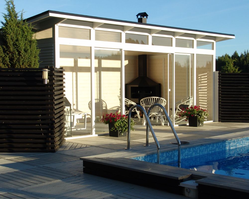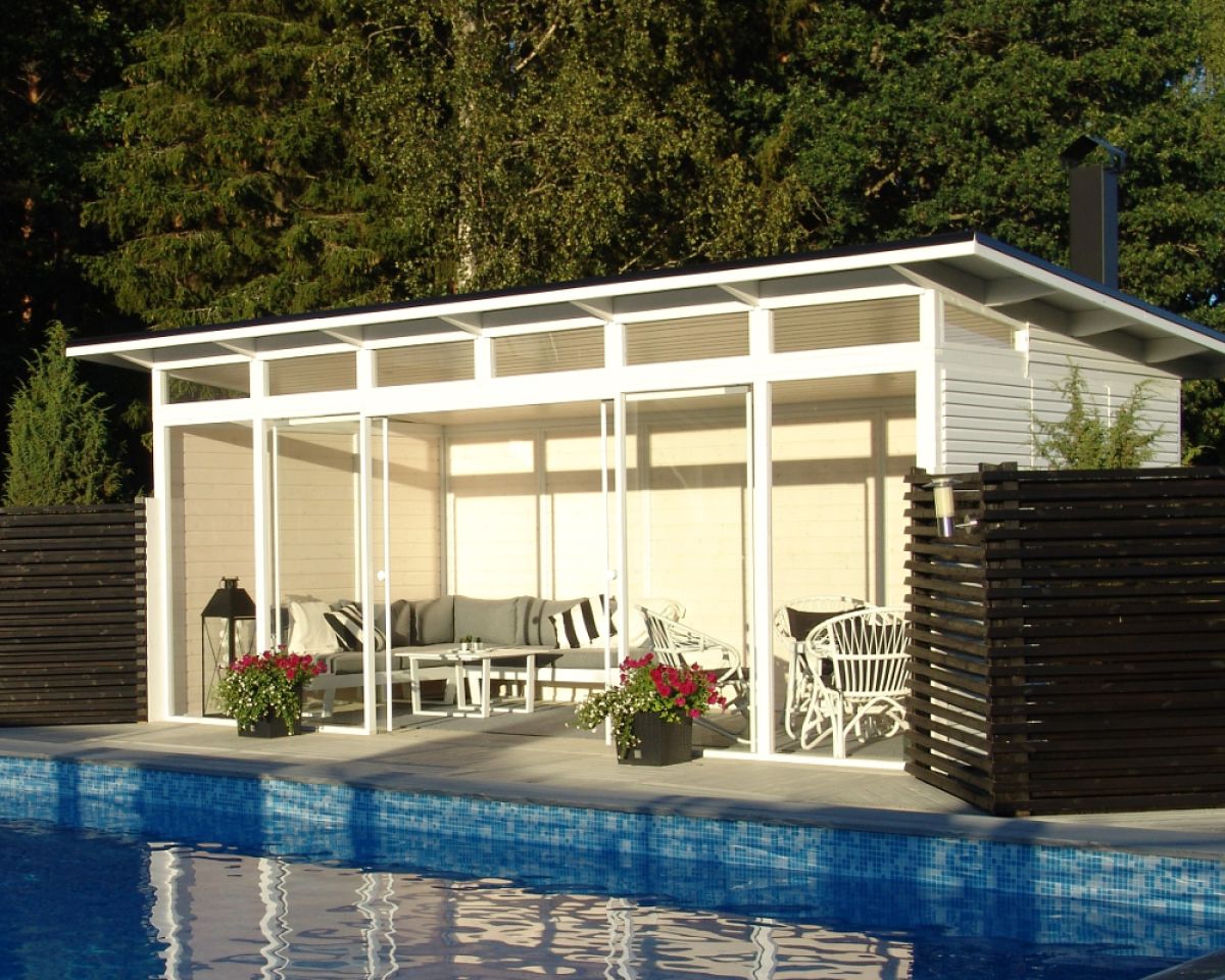 Lasipaviljongilla vietät terassikautta vaikka ympäri vuoden. Sen voi sijoittaa valmiille terassille tai lisävarusteena saatavan terassilattian kanssa melkein minne vain.
