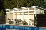 Vaihtoehtoisesti voit valita seinään lasi- tai umpielementtejä. paviljonki toimitetaan elementtitä ja määrämittaan sahattuin osina.
