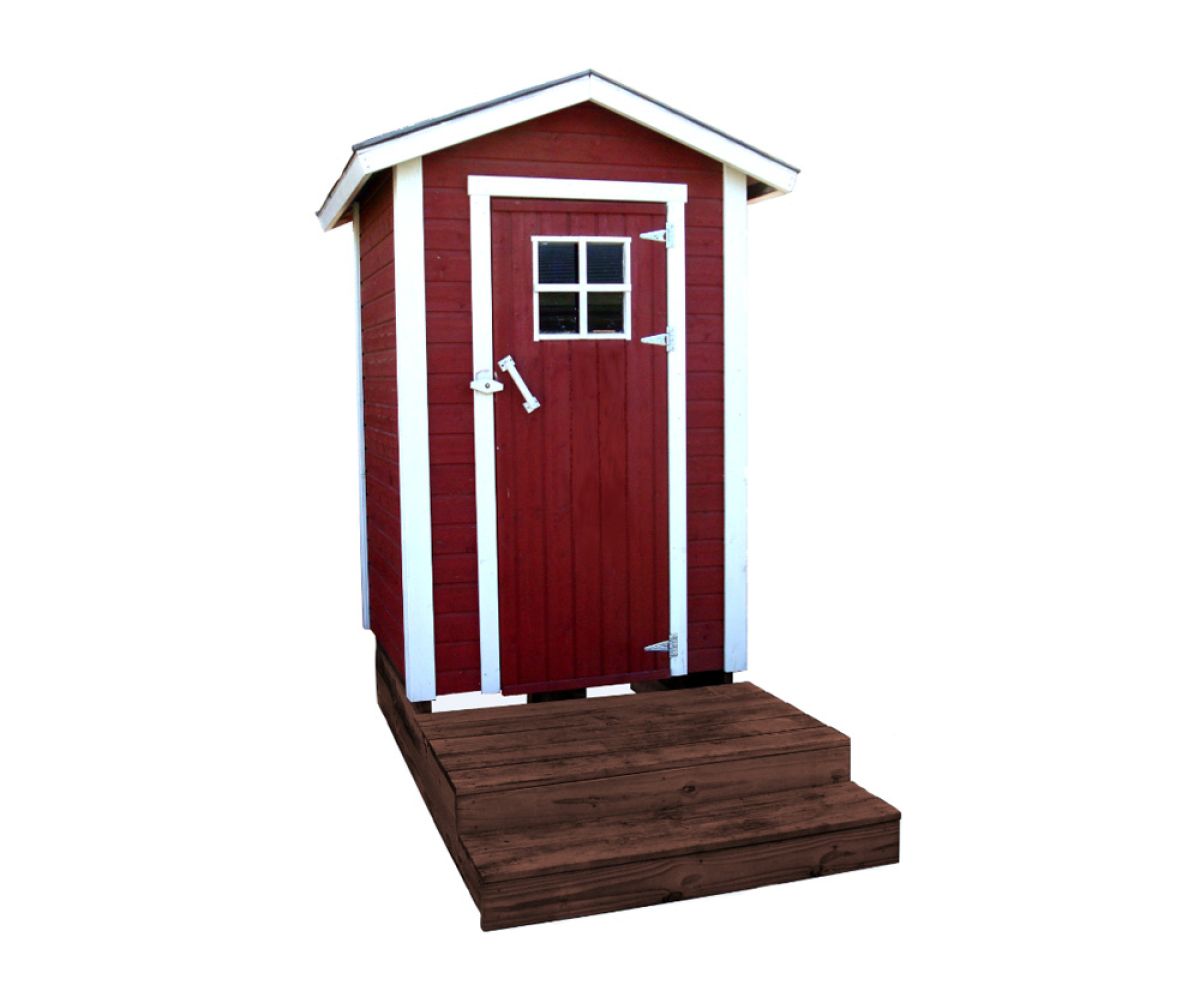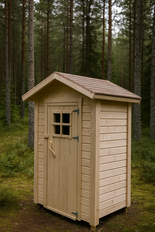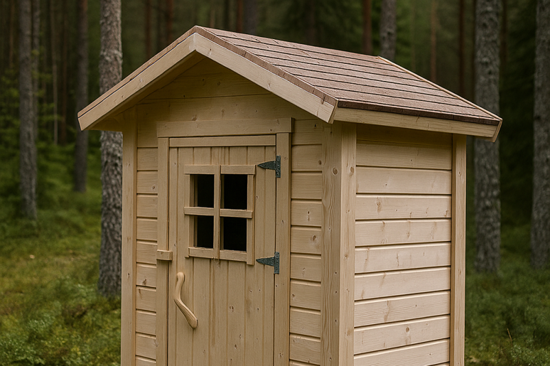 Kasaus: Tuote toimitetaan osina/elementteinä maalaamattomana, ilman kattohuopaa. Pakkaus sisältää puuosat, oven , helat ja kokoamisohjeen.