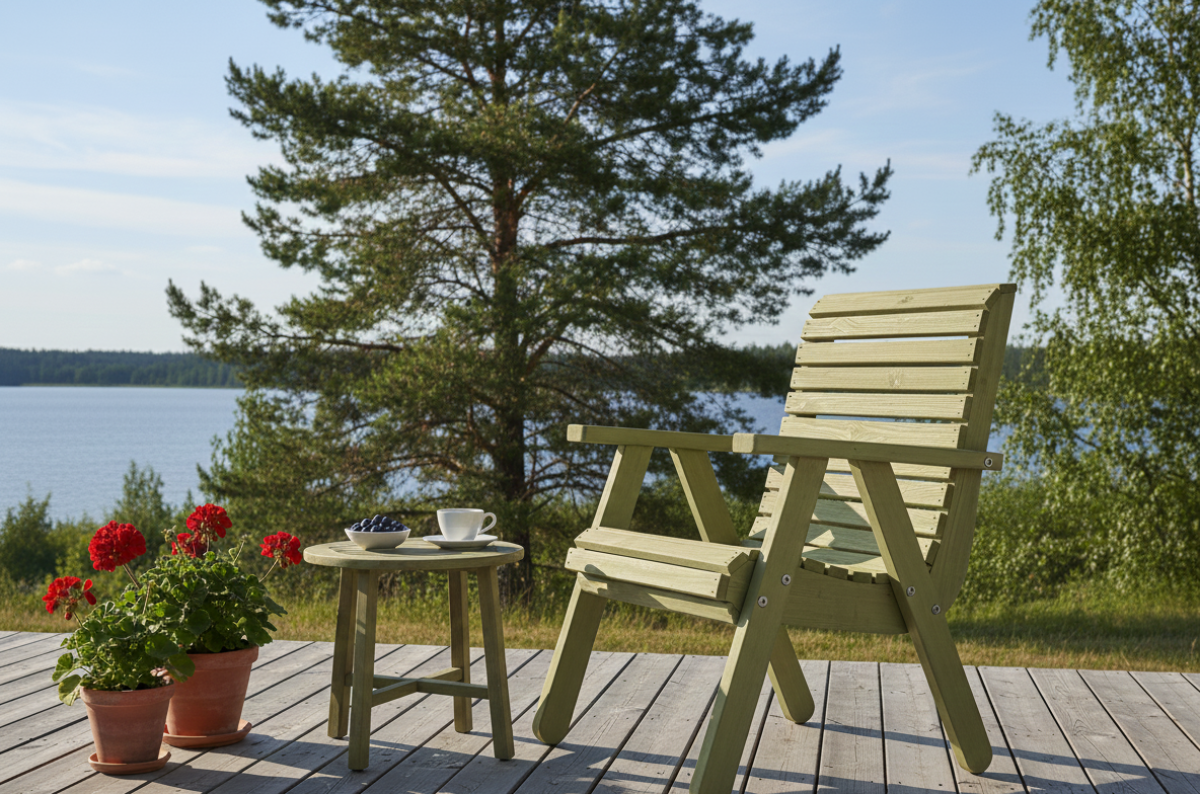 Harmonia-Kalusteen tuotteet valmistetaan kotimaisesta valikoidusta painekyllästetystä kuivatusta männystä. Siksi tuotteet ovat väriltään vaalean vihreitä ja ne on helppo öljykäsitellä tai maalata kuultoväreillä heti käyttöönoton jälkeen.