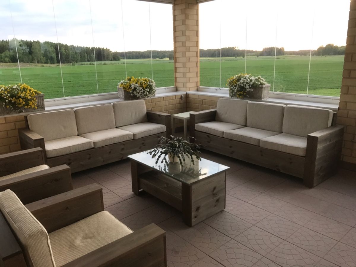 Kasaus: Tuote toimitetaan koottuna. Jäkälän sävyyn kuultovärjättyä, höylättyä mäntyä, sisältää pehmusteet.