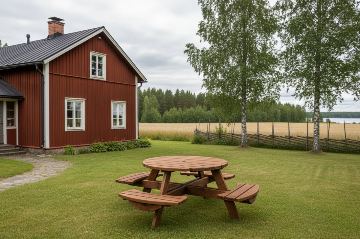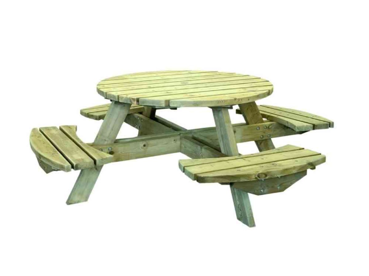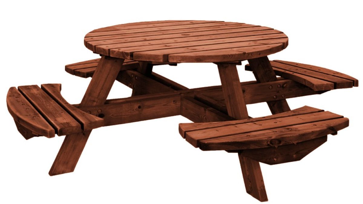 Ryhmä sisältää neljä kiinteää penkkiä ja pöydän.