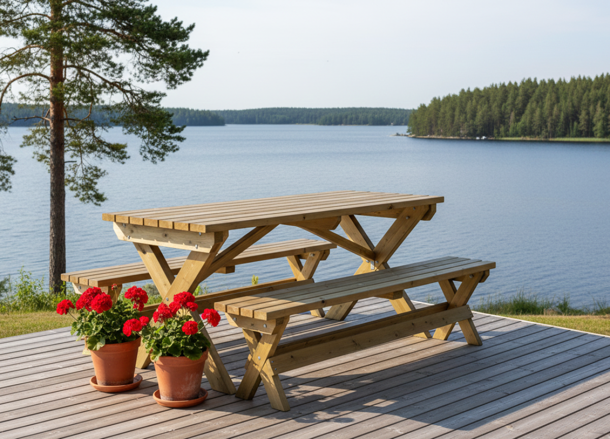 Harmonia-Kalusteen tuotteet valmistetaan kotimaisesta valikoidusta painekyllästetystä kuivatusta männystä. Siksi tuotteet ovat väriltään vaalean vihreitä ja ne on helppo öljykäsitellä tai maalata kuultoväreillä heti käyttöönoton jälkeen.